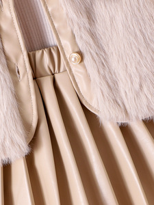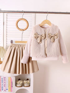 Kids clothing 跨境外贸秋冬新款小童杏色毛毛马甲打底衫百褶短裙