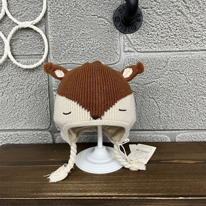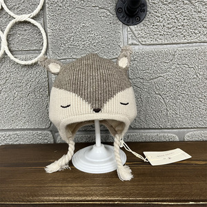 木然良品秋冬男女宝宝纯棉内衬帽子韩系小狐狸护耳帽保暖帽M111L