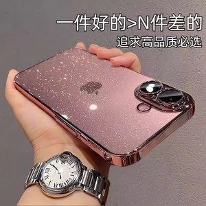 不发黄透明PC适用iPhone17手机壳电镀星空闪粉镜头膜苹果16保护套