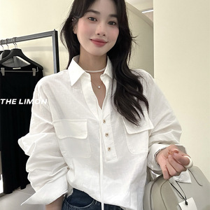 THE LIMON柠檬绿茶2025秋季韩标设计感系带收腰长袖衬衫减龄衬衣