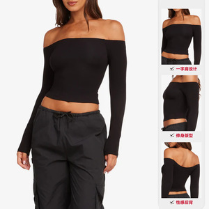 跨境打底一字肩长袖T恤女新款瑜伽服紧身普拉提训练服瑜伽上衣女