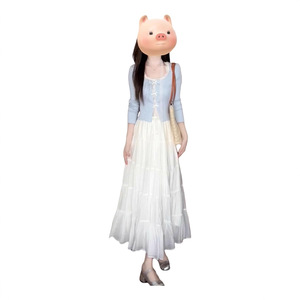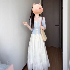 秋季一整套度假风超仙显瘦女学生半身裙+韩系减龄拼接假两件上衣