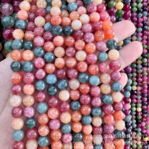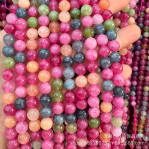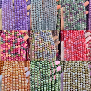 天然石优化彩色玉石紫水晶珠子diy圆珠手链玉髓玛瑙串珠配件饰品