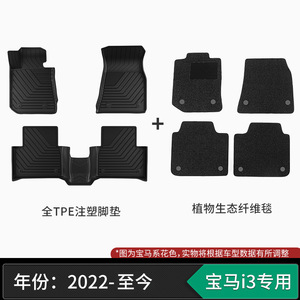 全注塑tpe 宝马i5 黑色脚垫+生态纤维绒毯 双层