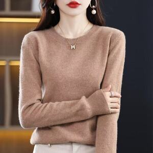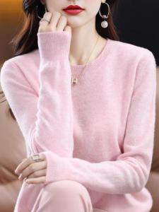 休闲百搭圆领毛衣女秋冬时尚洋气内搭新款大码宽松低领针织打底衫