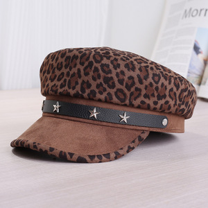 欧美跨境时尚洋气豹纹皮带星星金属标装饰遮阳帽户外装饰平顶帽