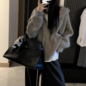 2025秋冬新款韩系连帽毛衣内搭慵懒风针织开衫拉链卫衣外套女装