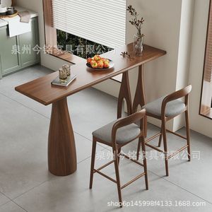 北欧全实木吧台桌家用高脚桌小户型阳台长桌客厅隔断岛台餐桌一体