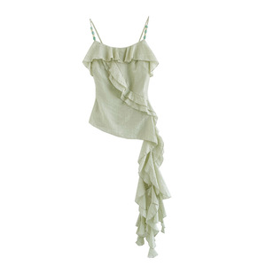 三寸藕【青荷漫舞】2025夏季新款气质巨好看绿色吊带女不规则上衣