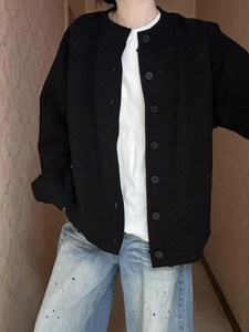 华夫格外套女黑色春秋款日系学院风穿搭宽松休闲百搭开衫夹克上衣