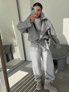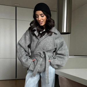 2025年秋季女装跨境亚马逊爆款气质百搭保暖毛呢外套收腰系带