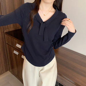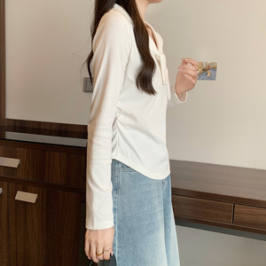 2025秋装新款胖mm大码女甜美时尚绑带弧形下摆收腰长袖内搭上衣