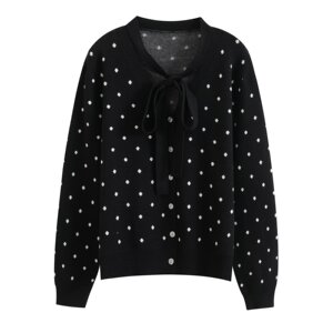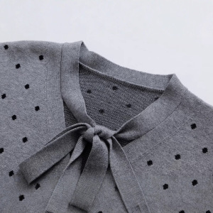 千金风上衣小众蝴蝶结灰色波点针织开衫毛衣女2025秋冬甜美外套