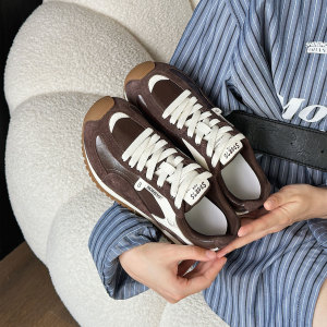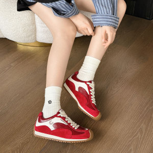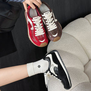 她履真皮德训鞋女2025秋季新款厚底阿甘鞋休闲百搭运动鞋增高女鞋