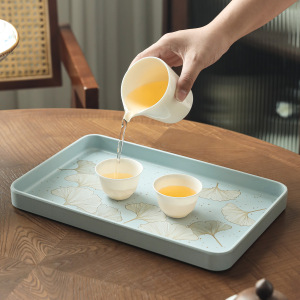高档中式长方形托盘新款家用客厅茶几放水杯茶杯茶盘密胺收纳盘