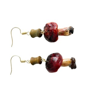 云南特色野生菌蘑菇木珠小红菇耳环女塑封森系可爱独特个性耳坠