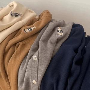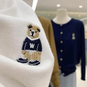 2025新款秋款小熊刺绣圆领长袖毛衣针织衫时尚百搭高级感开衫女装