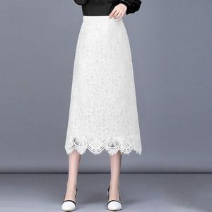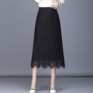 新款蕾丝半身裙中长款高腰a字裙春秋季过膝显瘦半裙包臀垂感裙子