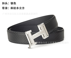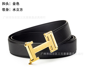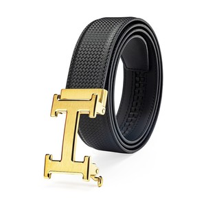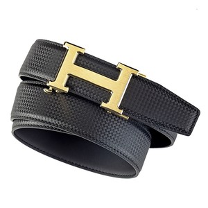不锈钢工字扣进口双面头层牛皮压花自动带男士真皮H字母皮带腰带
