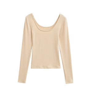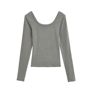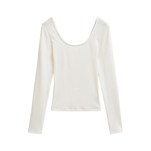 新款正肩大U领长袖T恤女修身弹力百搭打底衫可外穿秋冬季内搭上衣