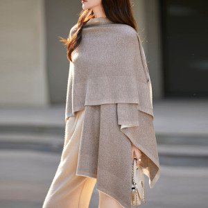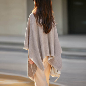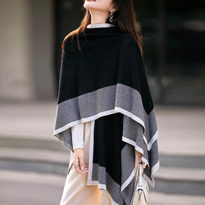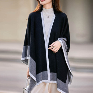 厂家批发2025秋冬新款细支精纺6羊毛拼色超大披肩斗篷现货可定制