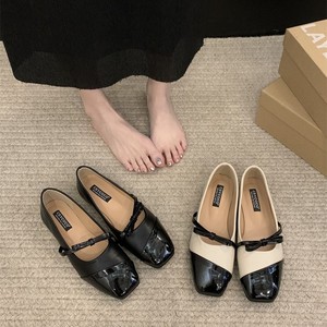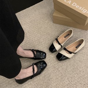 软皮版!法式蝴蝶结单鞋女平底通勤方头浅口瓢鞋复古晚风玛丽珍鞋