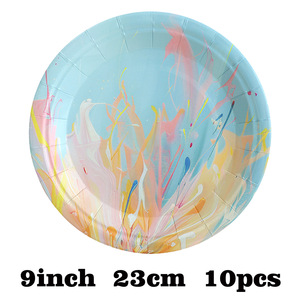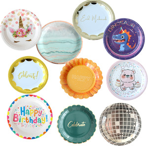 一次性纸盘卡通彩色餐盘生日派对蛋糕盘子圆盘甜品盘活动聚会餐具