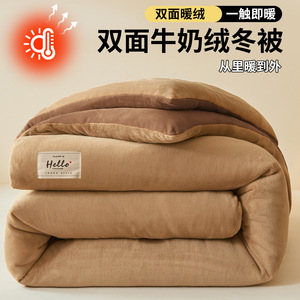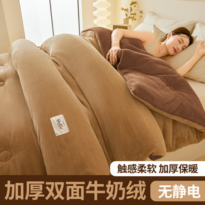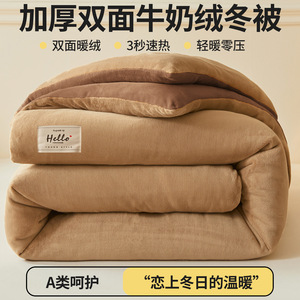新款纯色牛奶绒秋冬被双面保暖被子加厚A加密双面珊瑚绒被芯棉被