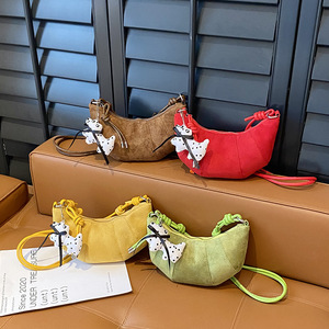 新款儿童牛角包时尚磨砂简约纯色宝宝饺子包迷你带挂件小孩配饰包