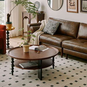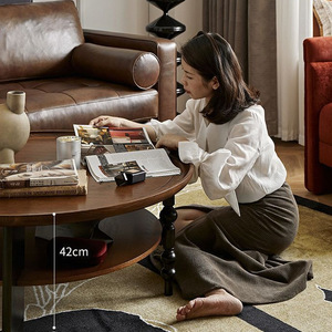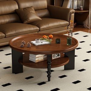 法式全实木茶几圆形茶桌小户型小桌子中古风家用客厅复古新款茶几