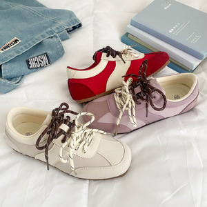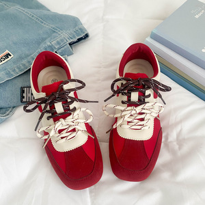 圣诞红轻便阿甘德训鞋女2025新款小众设计感平底休闲复古港风板鞋