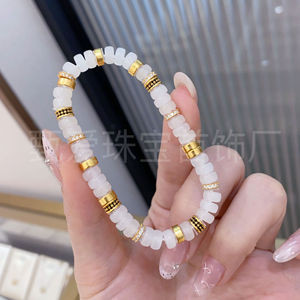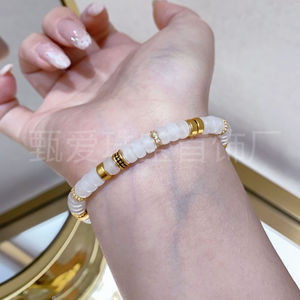直播爆款925银和田白玉直切药片珠串手链天然玉石国风文玩手串女