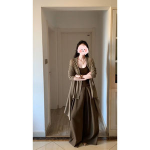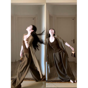 秋季慵懒风无袖吊带背心不规则开衫上衣宽松阔腿休闲裤套装女