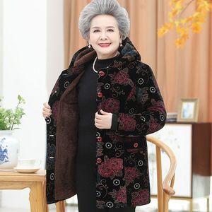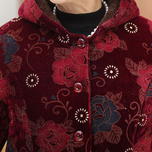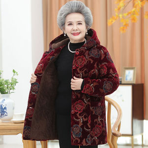 老年人冬装女中长款棉服60岁70奶奶装冬季棉衣老太太加厚连帽棉袄