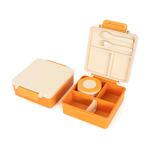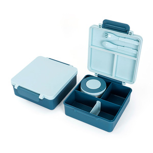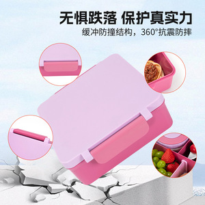跨境翻盖手提饭盒儿童食品级便当盒上班可微波加热餐盒带餐具批发