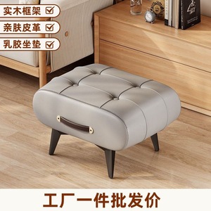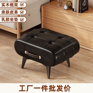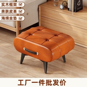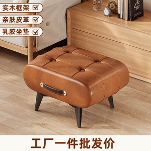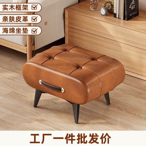 沙发凳家用入户矮凳油蜡皮手提凳客厅沙发脚踏意式轻奢换鞋凳软凳