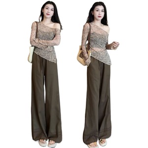 时尚套装女2025春秋新款时髦洋气不规则T恤上衣阔腿裤气质两件套
