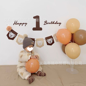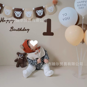版权INS小红书小熊头加厚横幅拉旗宝宝百天周岁生日布置家居卧室