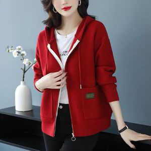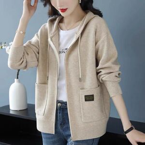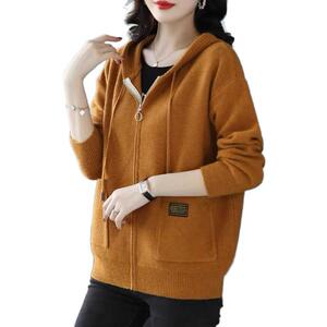 连帽毛衣外套女秋装2025新款时尚外搭带帽毛衣针织开衫春秋针织衫