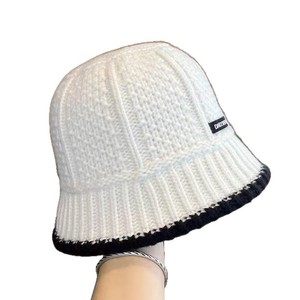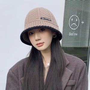 韩版毛线渔夫帽女秋冬保暖贴布字母盆帽时尚气质百搭针织水桶帽子