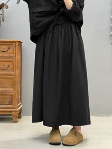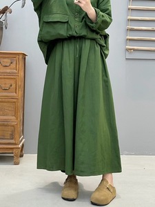 斜纹麻棉半身裙 2025秋季新款 复古气质宽松百搭纯色A字裙女8940