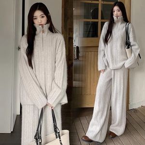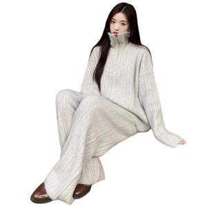大码女装慵懒风时尚套装冬季新款休闲宽松显瘦毛衣阔腿裤两件套潮