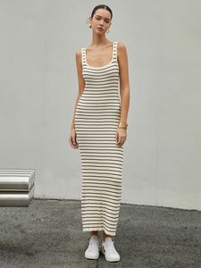 欧美2025秋冬新款跨境长款修身条纹无袖吊带收腰针织连衣裙