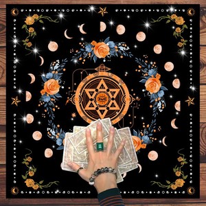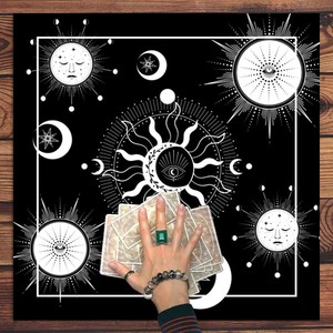 跨境塔罗牌桌布桌游装饰布拥有你的力量曼陀罗月相花卉蝴蝶桌布