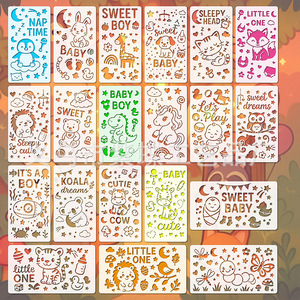跨境电商热销可爱卡通小动物喷涂镂空绘画模版temu儿童手抄报diy