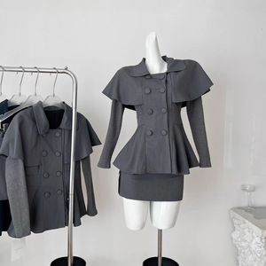 修身斗篷娃娃领短外套千金风套装秋季2025新款百搭女短裙两件套
