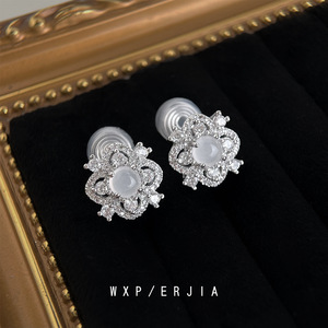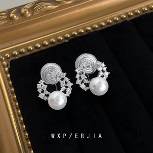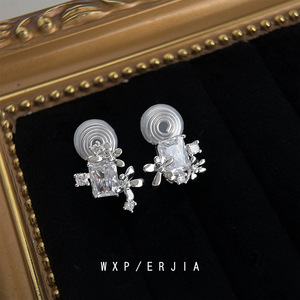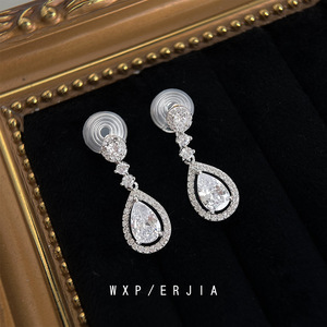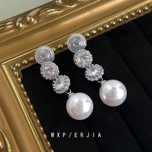 法式轻奢风微镶锆石蚊香盘耳夹小众设计感水滴形流苏无耳洞耳饰女