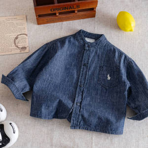 儿童软牛仔衬衣秋季2025新款男女童纯色上衣长袖宝宝衬衫外套洋气
