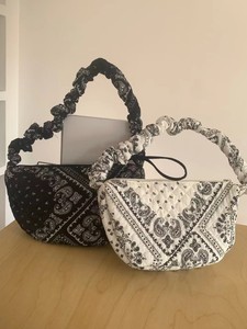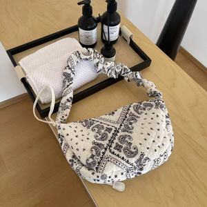 2025新款复古腰果花印花拉链云朵包轻便百搭单肩斜挎包褶皱抽绳