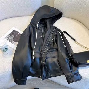 时尚连帽皮衣外套女2025秋季新款韩版宽松百搭高档洋气皮夹克潮